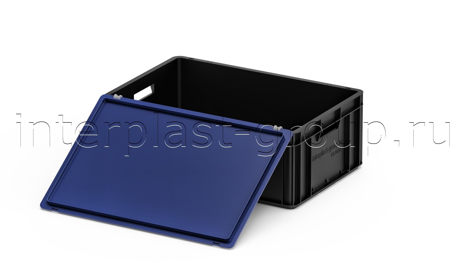 Евроконтейнер открытые ручки/сплошное дно (черный), 600x400x220 мм