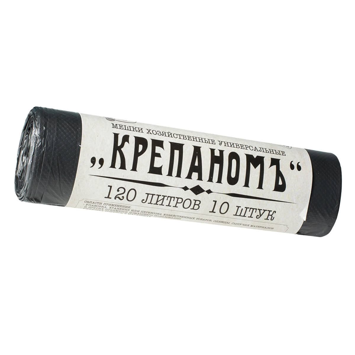 Мешки для мусора 120 л, черные, в рулоне 10 шт., ПНД, 12 мкм, 1030х660 мм, Крепаномъ, 4607075710573