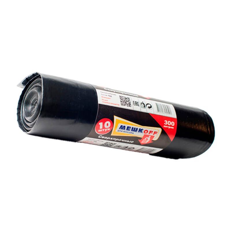 Мешки для мусора 300 л, черные, в рулоне 10 шт., ПВД 65 мкм, 1400х1000 мм, МЕШКОFF, 3589