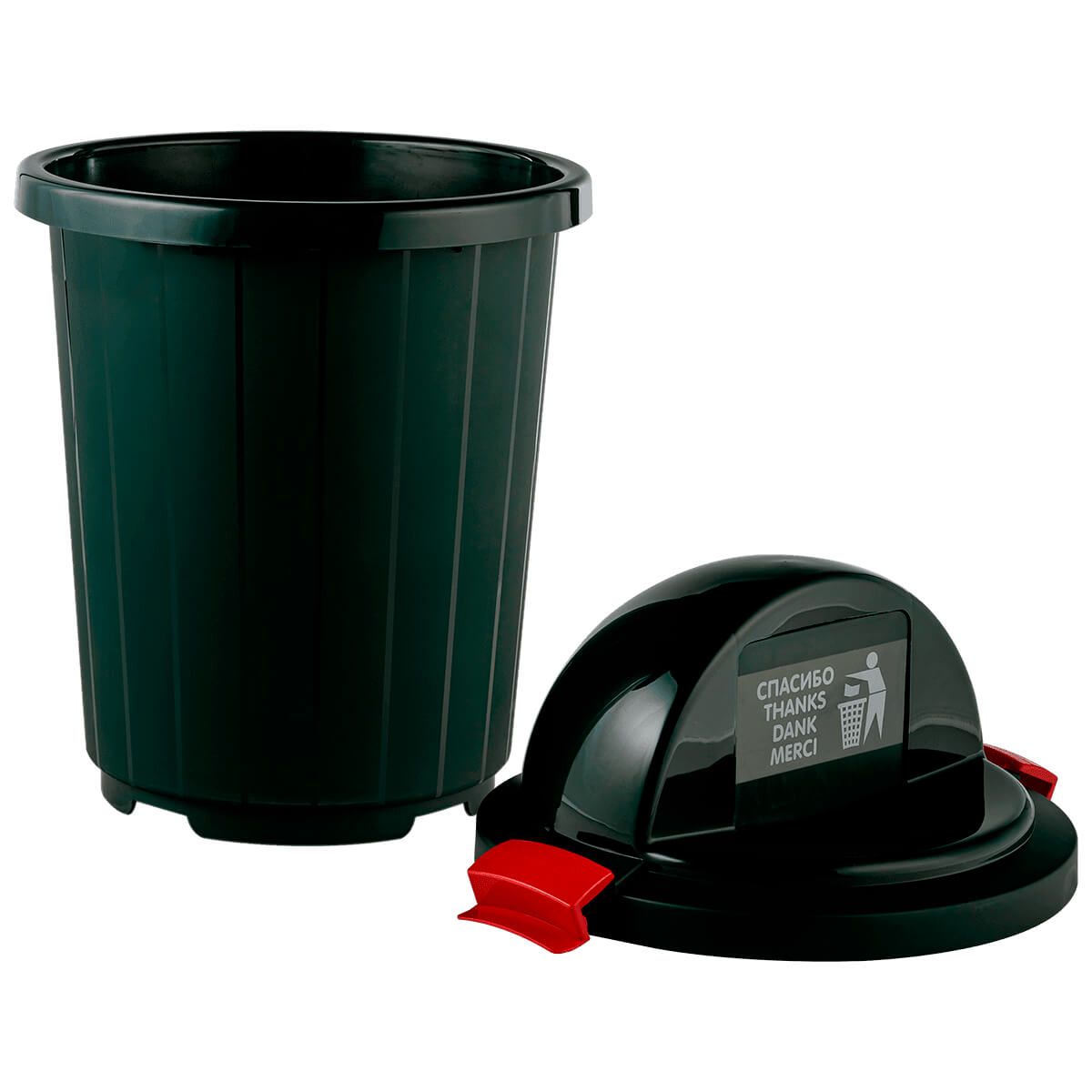 Удобная крышка-клавиша делает процесс выбрасывания мусора более гигиеничным, а фиксаторы предотвращают проникновение неприятных запахов и защищают от воздействия грызунов и насекомых. Гладкие внутренние поверхности обеспечивают легкость очистки и дезинфекции.