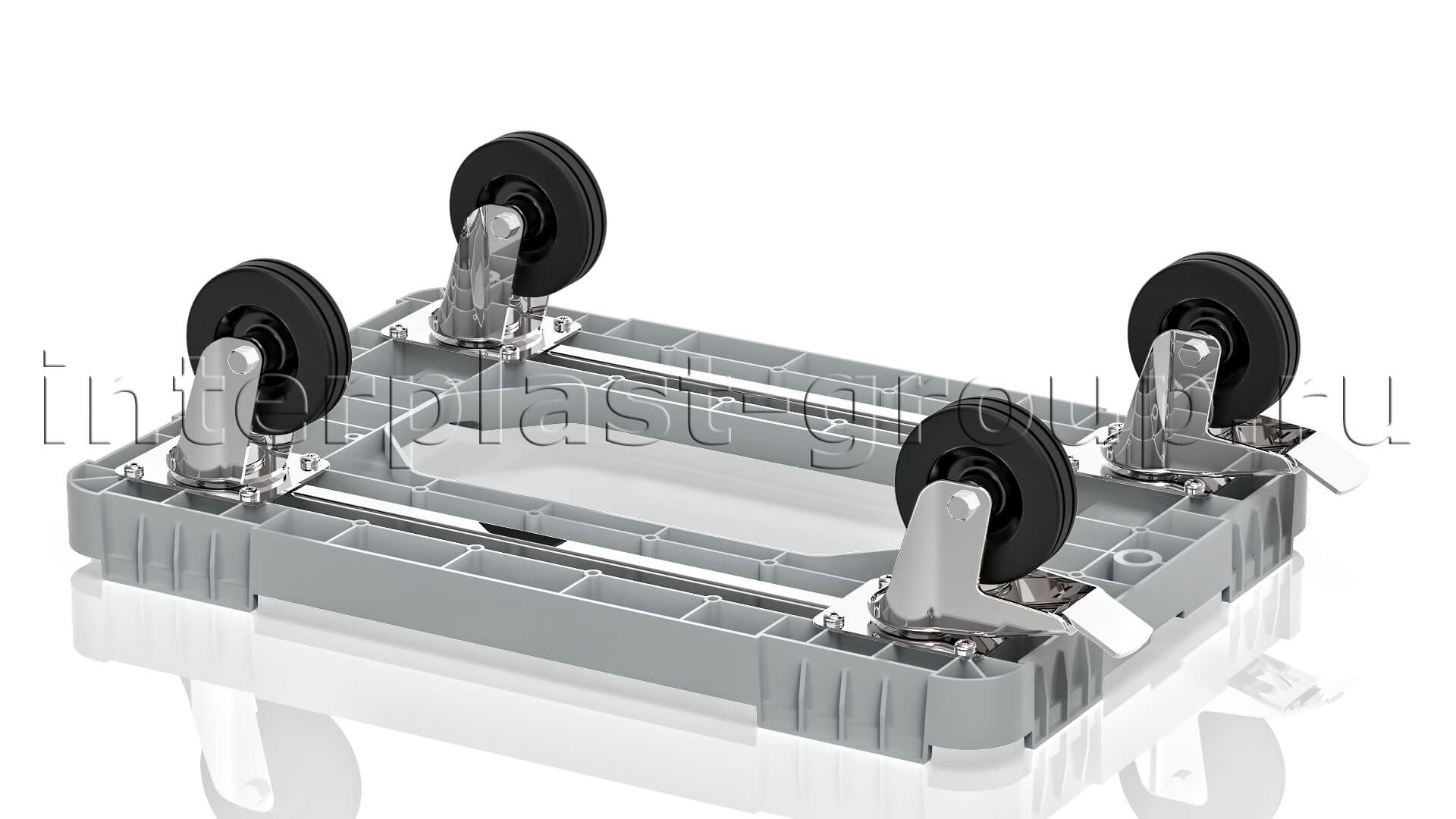 Тележка пластиковая с отверстием 2 колеса с тормозом усиленная серая