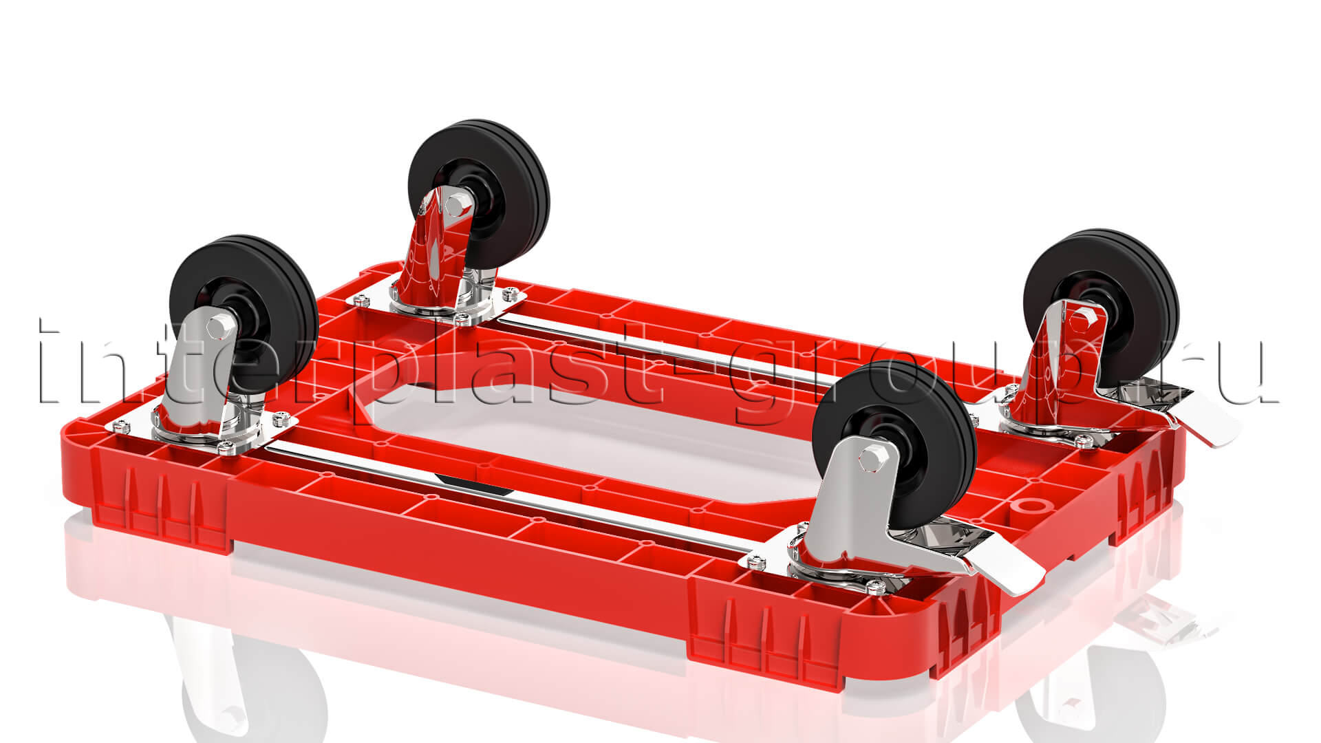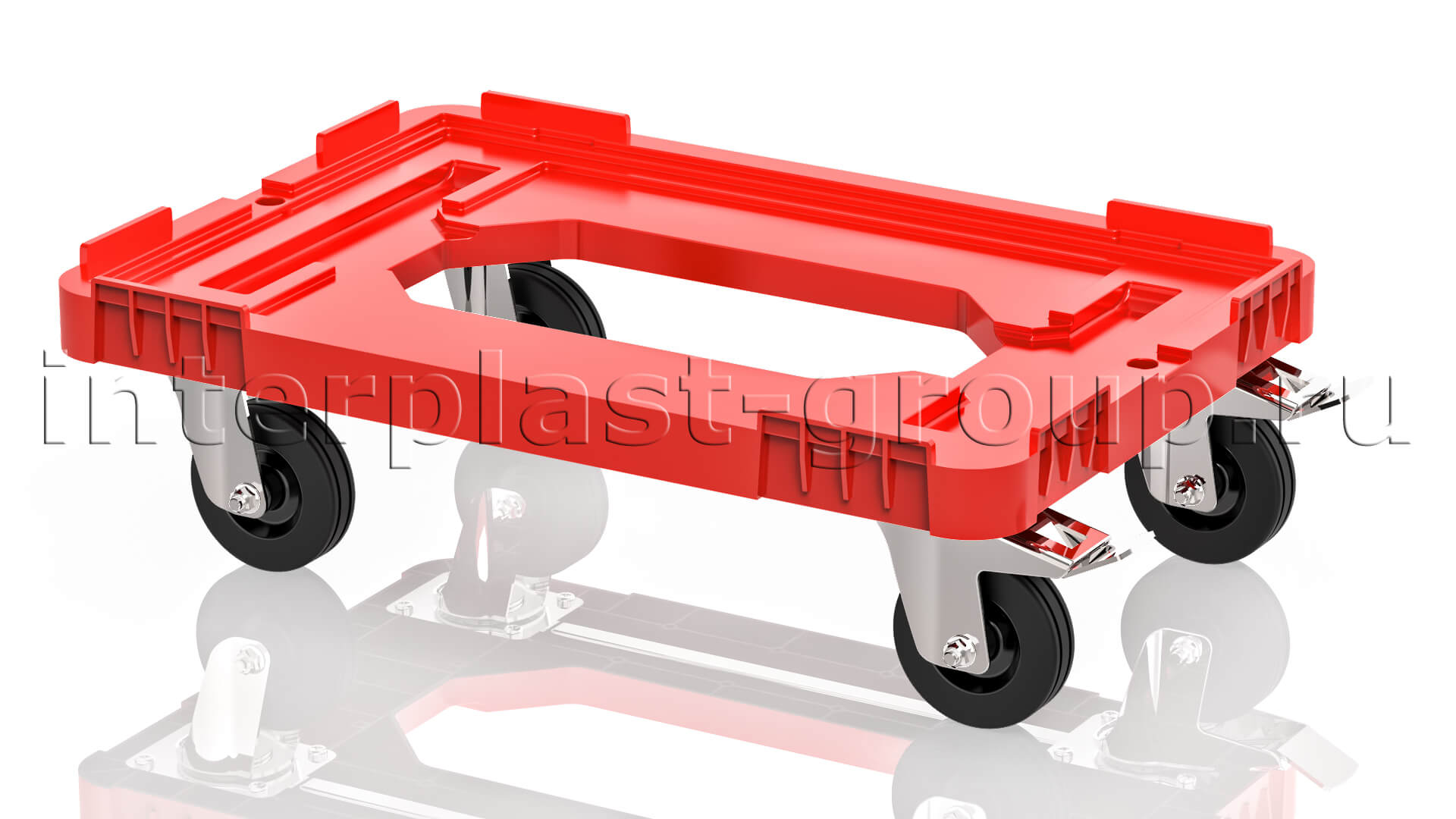 Тележка пластиковая с отверстием 2 колеса с тормозом усиленная красная во Владимире