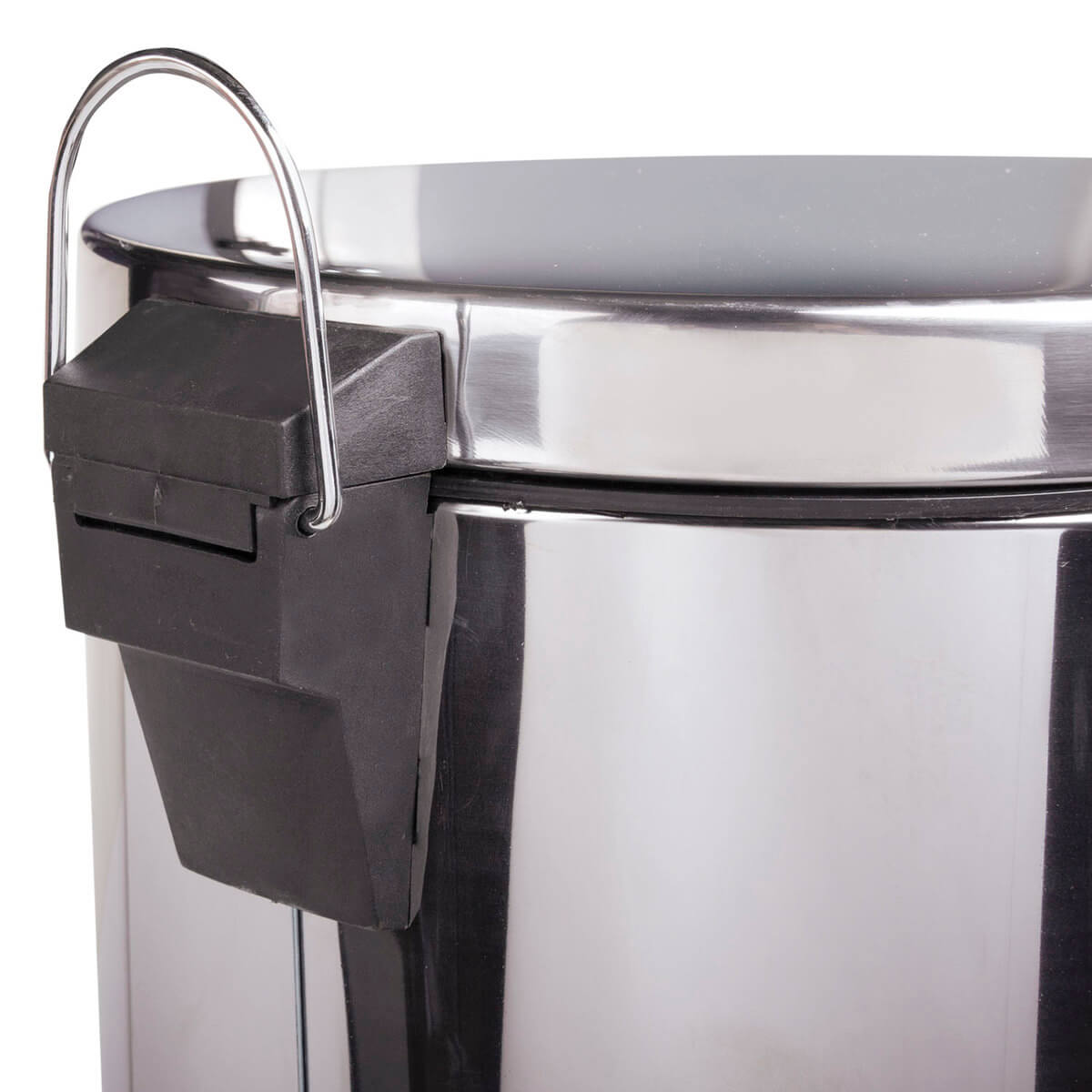 Рекомендуемый объем мешка - 10 литров, что позволяет этому контейнеру легко вписаться в любое пространство. В стальном цвете с зеркальным покрытием он придаст интерьеру современный и стильный вид.