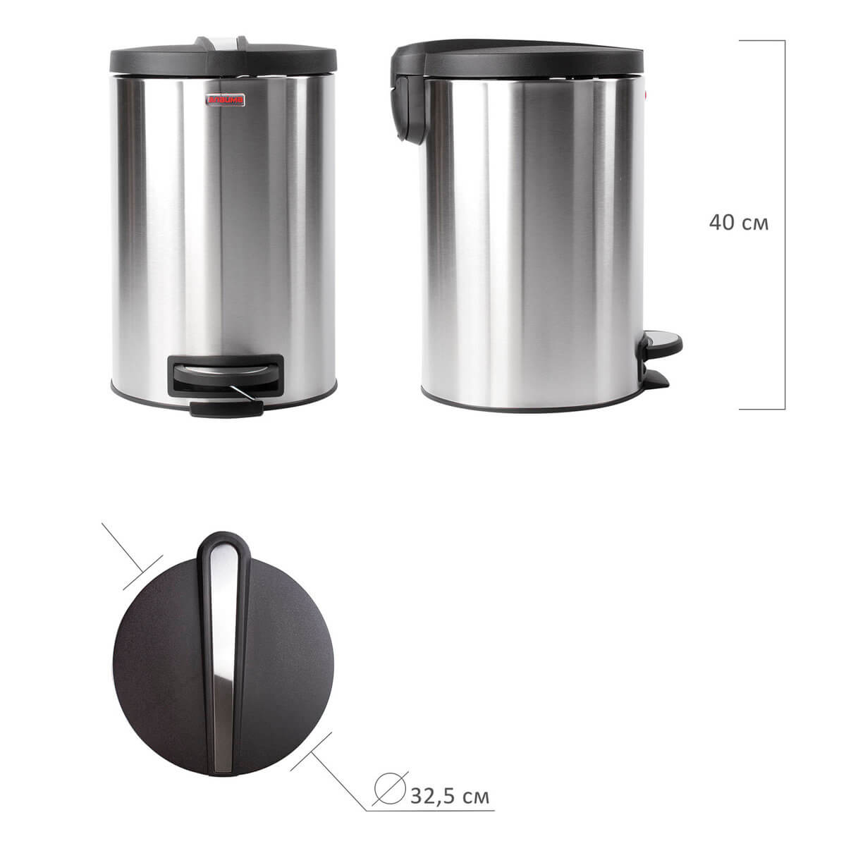 Ведро-контейнер для мусора (урна) с педалью LAIMA Modern, 12 л, матовое, нержавеющая сталь, со съемным внутренним ведром